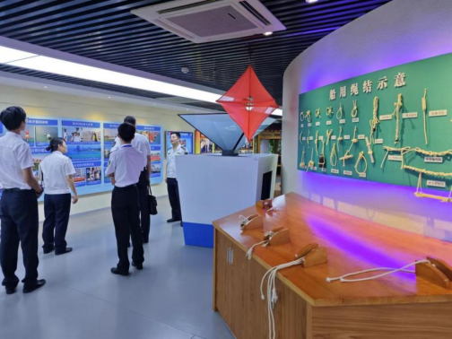 座谈结束后,团队参观了福建海事文化展厅,详细了解了福建航海文明和海事发展历程。展厅由“闽海潮生”“云帆初扬”“长风远航”三个展览板块组成,全面展现了福建历史上海丝文化、妈祖文化和船政文化。